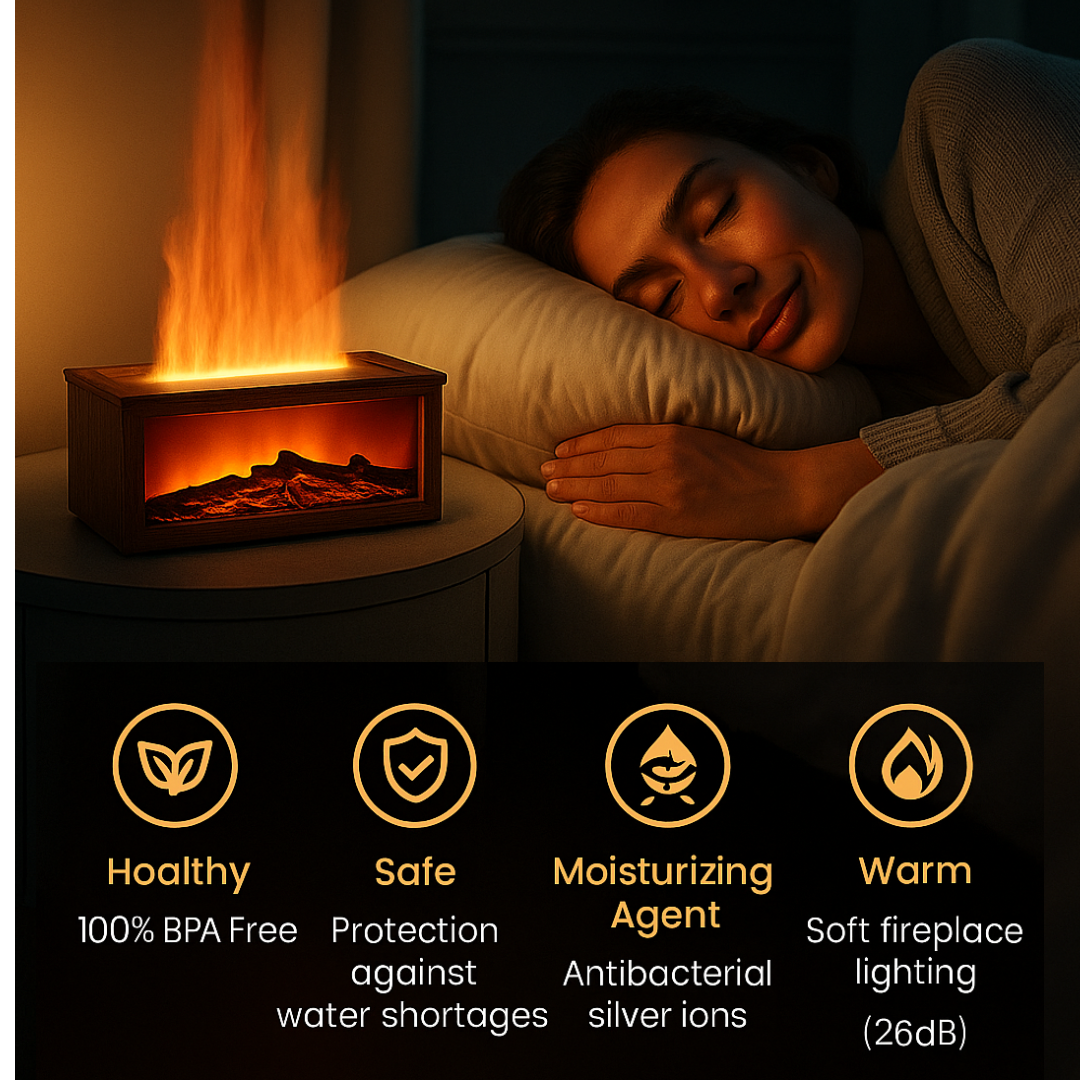 No more cold nights or dry air disrupting your sleep. With this humidifying fireplace, you’ll enjoy the warmth of a realistic flame, fresh and healthy air, and a sound so gentle you’ll barely notice it’s on. Your rest and well-being are priceless.